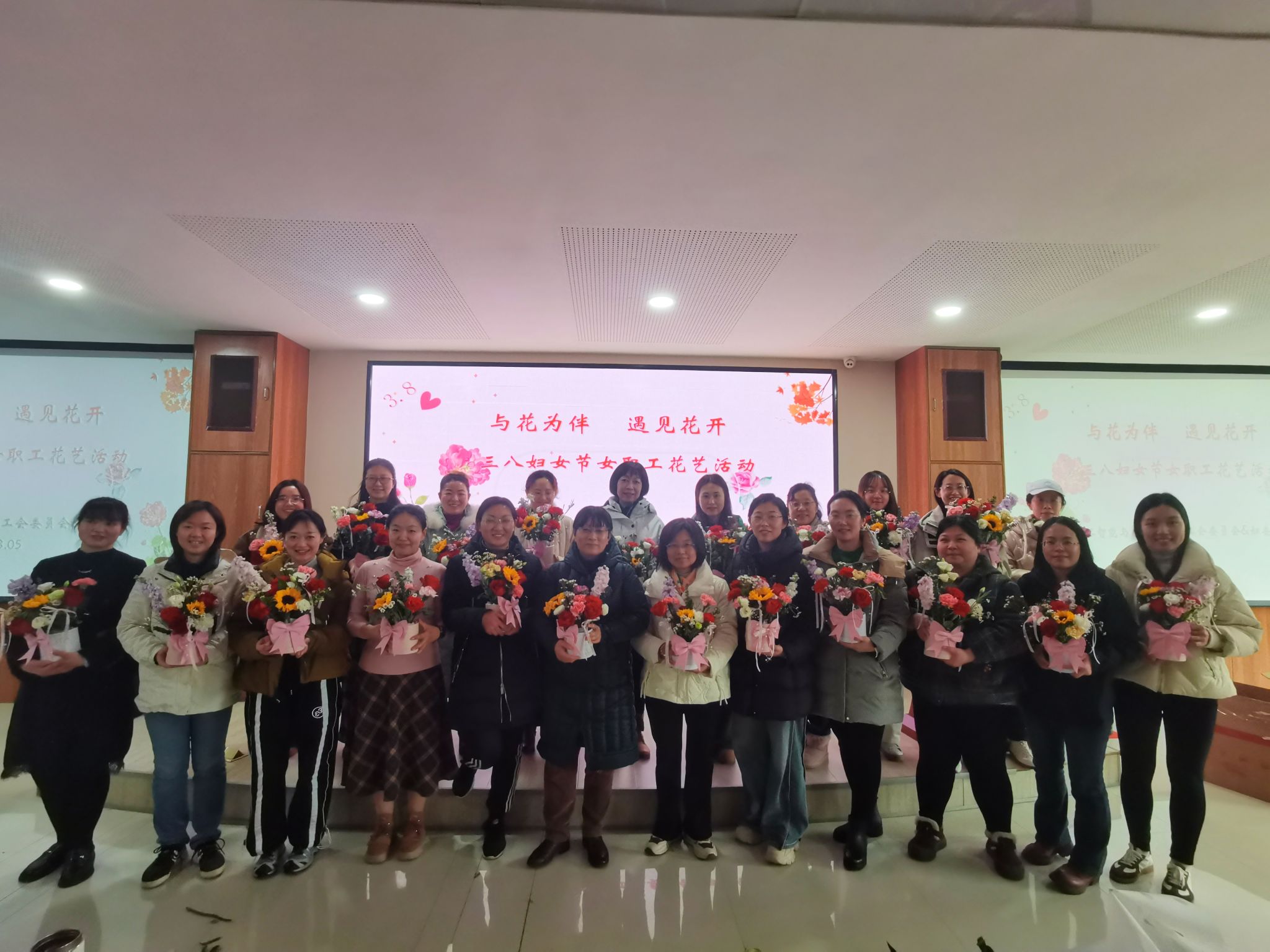 最后大家手持自己的作品拍照留念,此次插花活動(dòng),不僅豐富了女性職工的精神文化生活,提高了大家對(duì)美的鑒賞能力,也增強(qiáng)老師們的凝聚力,創(chuàng)造力。