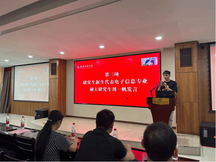 武科大網(wǎng)訊(通訊員 李軻)信息學(xué)院于9月15日上午在教十樓學(xué)術(shù)報(bào)告廳舉行了2023年研究生新生開學(xué)典禮。學(xué)院院長劉振興、副院長吳謹(jǐn)、副院長陳曦、副院長朱斌、黨委副書記陳凱、自動化系黨支部書記黃衛(wèi)華、電氣系主任柴琳、電信系副主任但峰、微電子系副主任羅輝、電工電子課部支部委員武達(dá)亮、研究生輔導(dǎo)員吳廣良老師和2023級研究生輔導(dǎo)員張得運(yùn)老師出席了此次典禮。本次典禮由黨委副書記陳凱老師主持,參與開學(xué)典禮的還有研究生二年級代表王蔡琪同學(xué)以及2023級全體碩士和博士研究生。