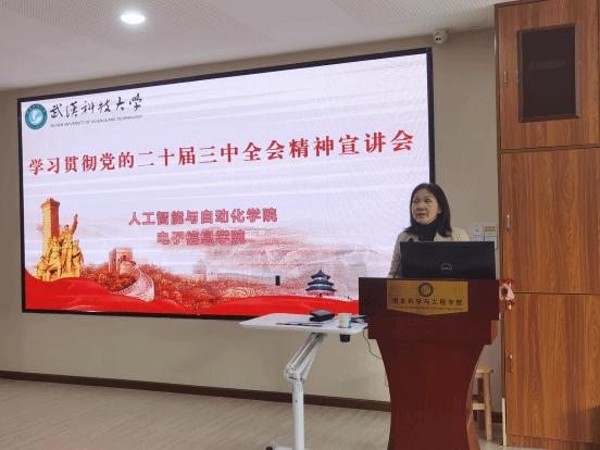 為了讓廣大青年深入領(lǐng)會(huì)黨的二十屆三中全會(huì)精神,進(jìn)一步加強(qiáng)青年學(xué)生思想政治引領(lǐng),引導(dǎo)廣大青年學(xué)生在學(xué)思踐悟中凝聚奮進(jìn)力量,將青春力量匯聚于進(jìn)一步全面深化改革的偉大事業(yè),推動(dòng)中國(guó)式現(xiàn)代化的進(jìn)程,11月21日下午,學(xué)院邀請(qǐng)了永利集團(tuán)88304官網(wǎng)電氣工程系黨支部書(shū)記蔡彬副教授為學(xué)生黨員做了題為“緊扣中國(guó)式現(xiàn)代化主題 進(jìn)一步全面深化改革”的主題報(bào)告。報(bào)告會(huì)由電子信息學(xué)院黨委書(shū)記王婧主持,130余名師生聽(tīng)取了報(bào)告。