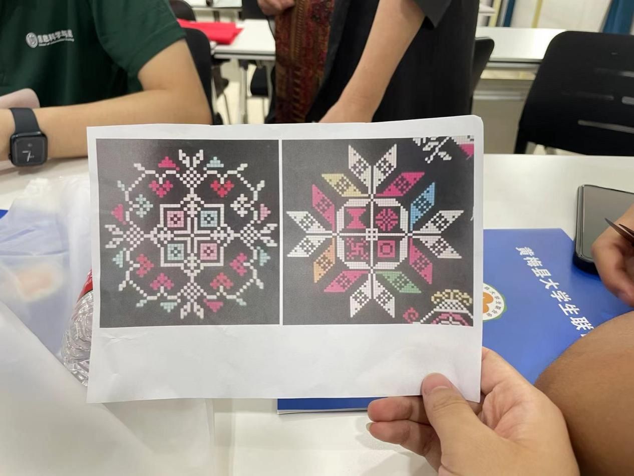 挑花,黃梅縣的文化瑰寶,這門古老且精湛的手藝讓學子們著迷。通過深入學習,對挑花的歷史、工藝和文化含義有了更深的理解。副理事長劉雄講解挑花圖案的分類、構圖原理以及其象征寓意,使得學子們對這門藝術有了更深的認識。