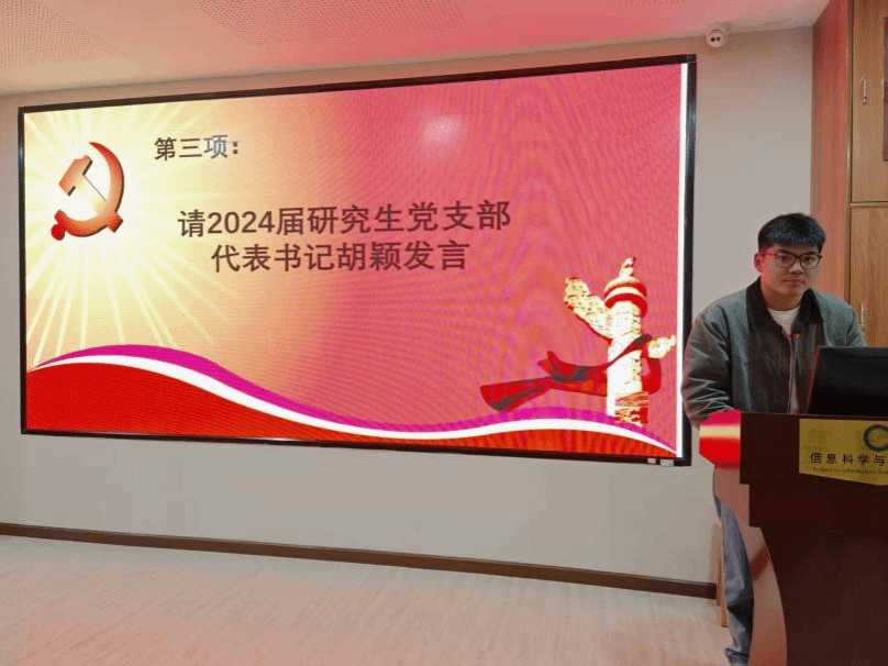 隨后,2024屆研究生黨支部代表書記胡穎發(fā)言。胡穎回顧了過去一年黨支部在組織建設、思想引領以及服務同學等方面的工作情況。他提到,在組織建設上,黨支部通過開展形式多樣的主題黨日活動,增強了黨員之間的凝聚力和向心力;在思想引領方面,積極組織黨員學習黨的理論知識,引導大家堅定理想信念,提高政治素養(yǎng);在服務同學上,黨支部發(fā)揮先鋒模范作用,為同學們解決學習和生活中的實際困難,得到了同學們的廣泛認可。胡穎表示,過去一年的成績離不開全體黨員的共同努力,同時也感謝學校和學院黨組織的關心與支持。他希望新一屆黨支部能夠繼續(xù)發(fā)揚優(yōu)良傳統(tǒng),不斷創(chuàng)新工作方法,為黨支部的發(fā)展注入新的活力。