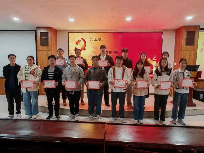 最后,輔導員張得運、唐瓊為2025屆黨支部成員頒發(fā)聘書,并為2024屆黨支部書記贈送書籍。張得運強調(diào),新一屆黨支部成員要樹立團隊意識和大局觀念,分工協(xié)作,共同推進黨支部工作不斷向前發(fā)展。