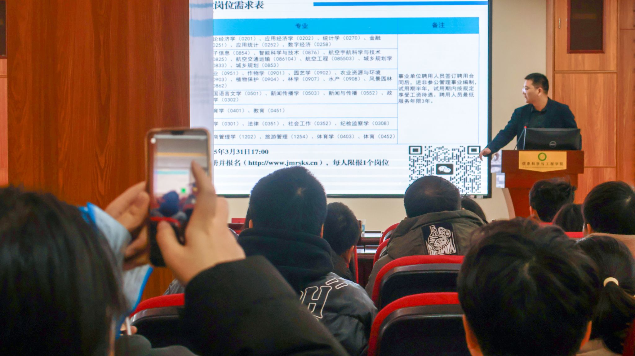 此外,宣講會上師生認(rèn)真觀看了荊門市漳河新區(qū)宣傳片、人才政策匯編手冊,時不時拿起手機(jī)記錄。宣講結(jié)束后,師生紛紛與李鄒洋熱情交流。該學(xué)院博士生王同學(xué)表示:“政策誠意遠(yuǎn)超預(yù)期,尤其是科研與產(chǎn)業(yè)的無縫對接,對工科生極具吸引力?!?/span>